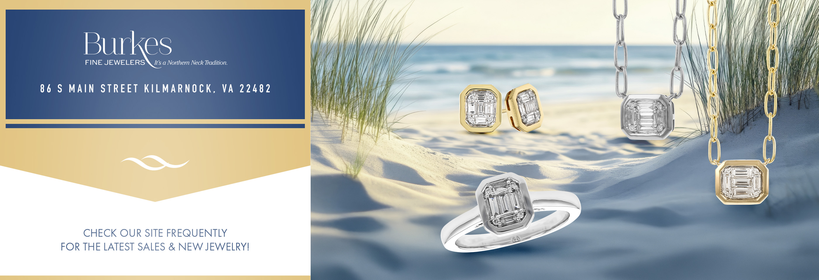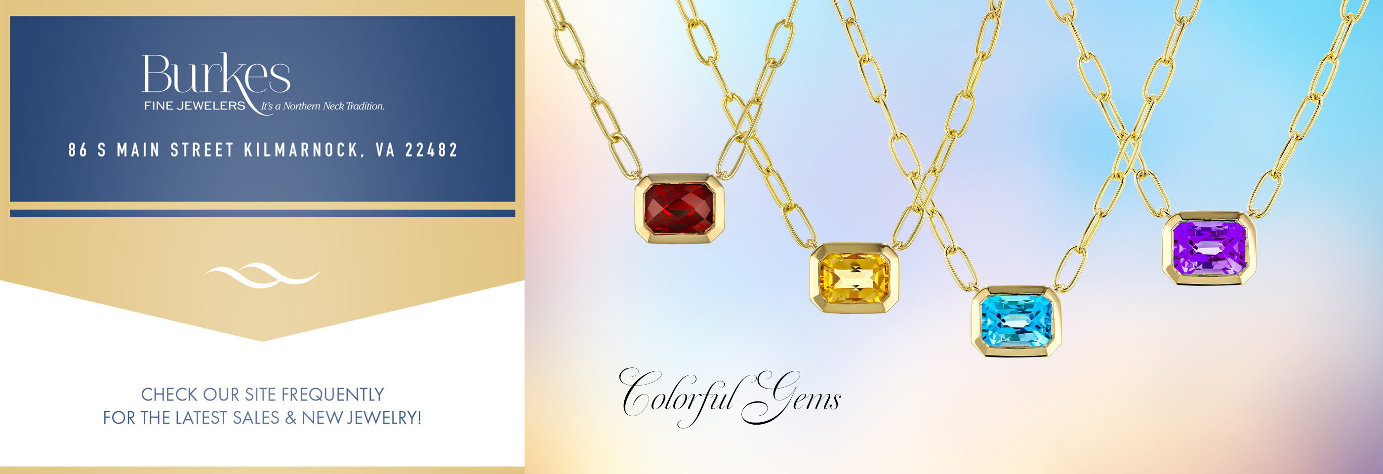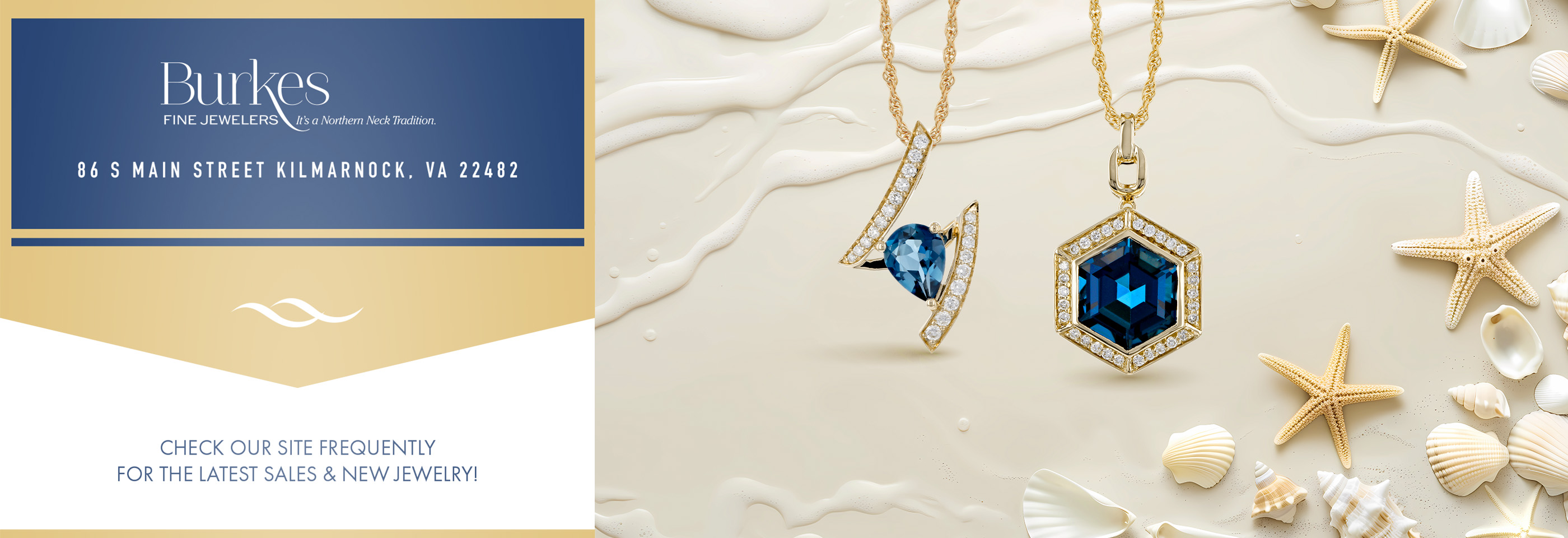 Serving the Northern Neck and all across the USA since August of 1969, we have locations in Kilmarnock and Warsaw. Custom designs and one-of-a- kinds are our specialty, as well as our featured Fine Jewelry Designer Lines Allison Kaufman, Flaircraft, Shula and our very own exclusive Coastal designs from our River Collection! Burkes Fine Jewelers has been here for over 56 years and we promise still nothing but the finest treasures, the most accommodating service and friendly smiles when you walk through our doors. We are a full service jewelry store repairing, restoring and refreshing with years of experience are two in-house bench jewelers. Come see why we have been voted the Best Fine Jeweler in Virginia for twelve consecutive years by Virginia Living readers.